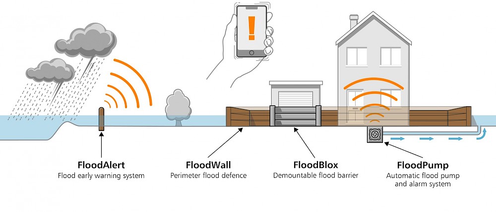 To support UK households, businesses and public organisations in protecting themselves and their assets from the effects of extreme rainfall, Andel has developed a turnkey package of products and services for Property Level Flood Defence. Our approach is to create a proactive chain of defensive lines to allow for a timely response to flooding caused by rainfall to protect both assets and human life.