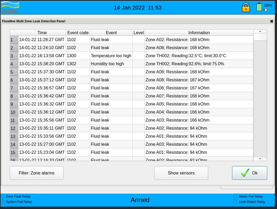 Traditional Zone Data Logging – each zone’s input levels are recorded every 5 minutes over 7 days on a FIFO basis