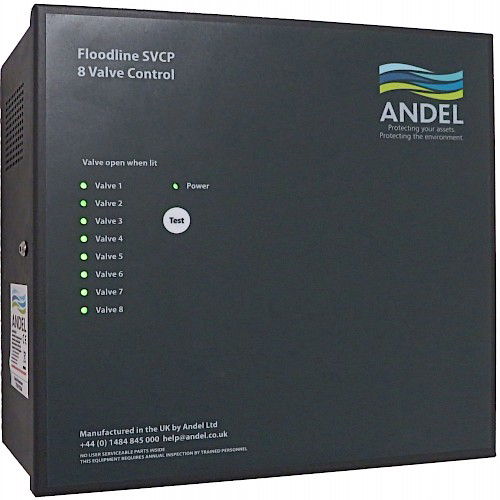 Floodline® 8-Way SVCP monitors alarm relays in a Floodline® control panel and automatically controls the operation of solenoid or energy-saving motorised valves to isolate a water, oil or gas source when a leak is detected. Floodline® 8-Way SVCP is available in eight configurations to control up to eight 24Vdc 16 Watt valves.
