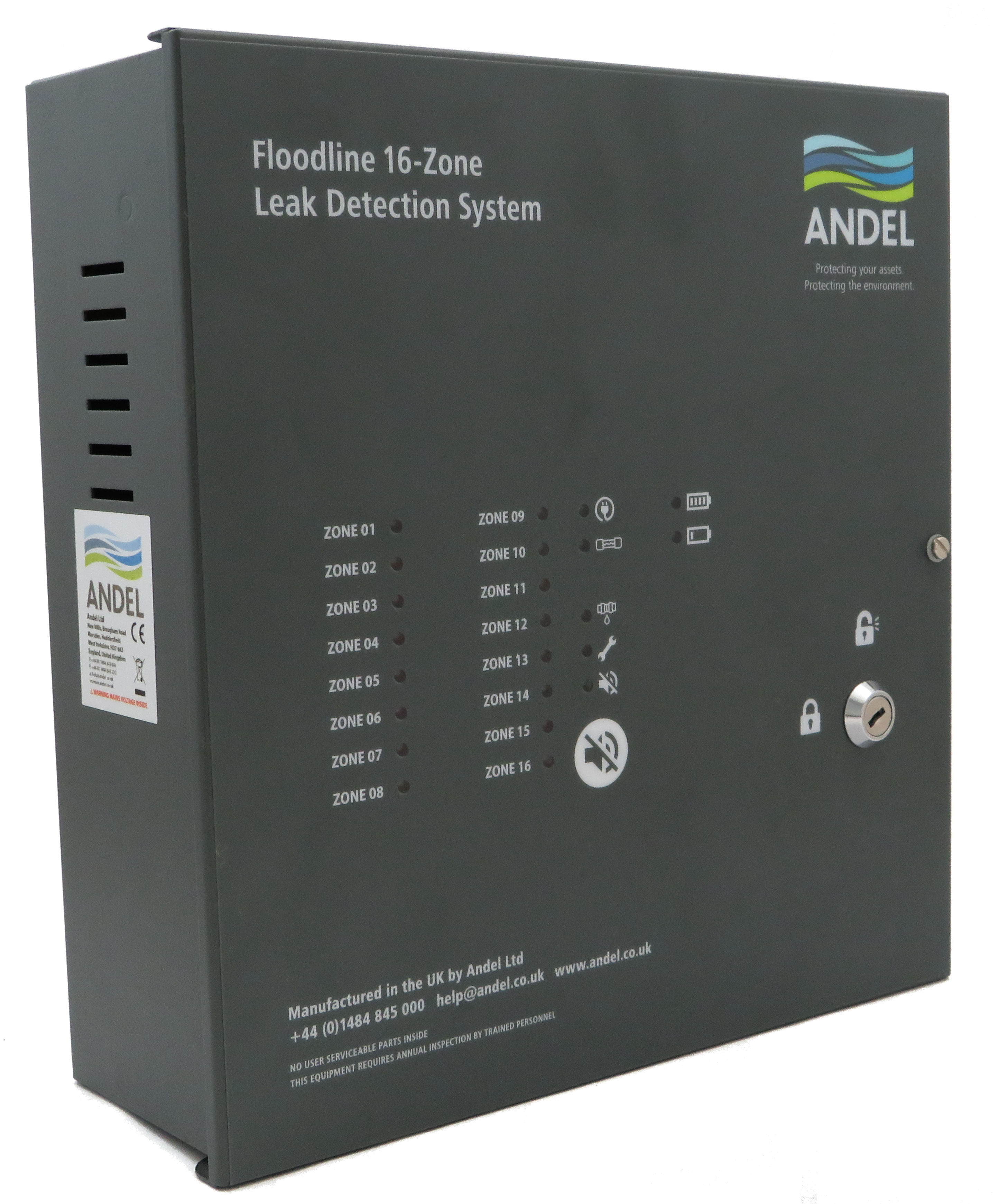 The Floodline® Multi-Zone Control Panel is available as 4-zone, 8-zone and 16-zone panel options designed for wall mounting. The control panel continuously monitors a network of multiple leak detection zones. With updated technology and enhanced installer and end-user functionality, the Floodline® Multi-Zone Control Panel is a truly multi-functional and customisable water, oil and gas leak detection control panel.